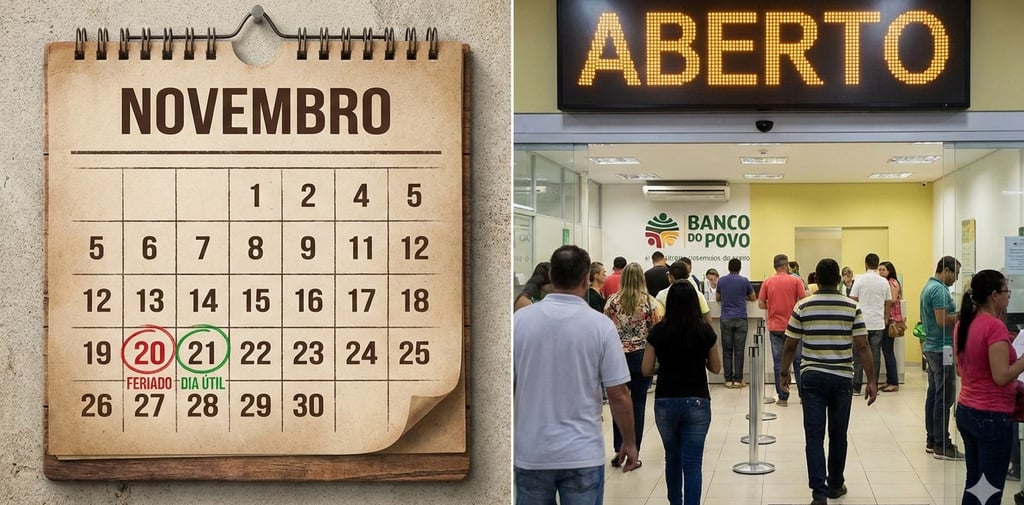 Sexta-feira (21/11): É dia útil normal para o setor bancário. As agências abrem para atendimento ao público no horário habitual.