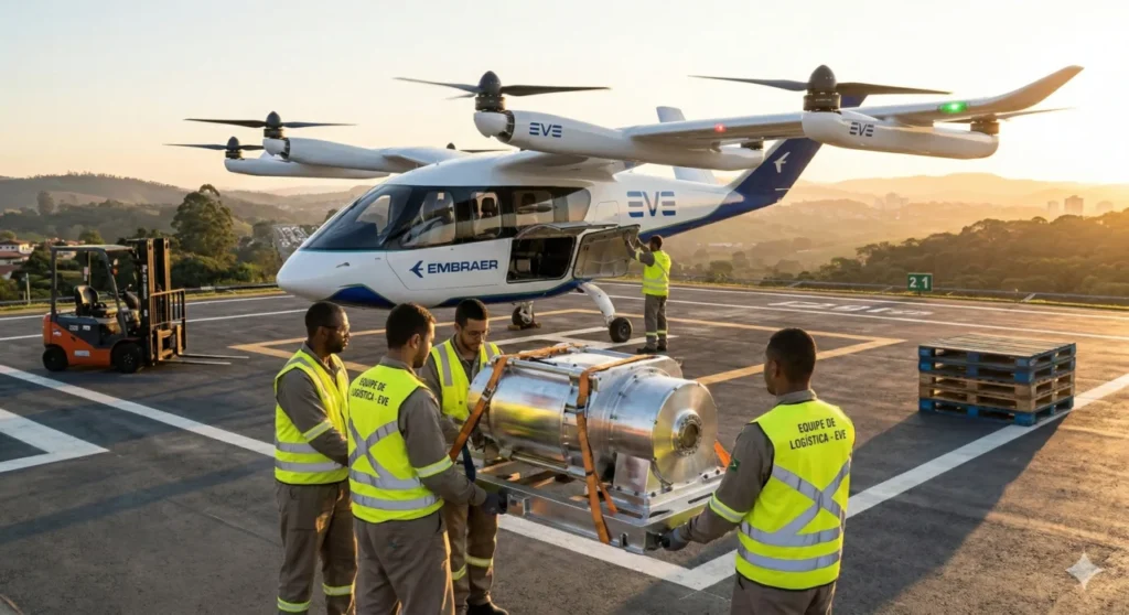 O céu de São Paulo inaugurou uma nova era para a indústria nacional logo nas primeiras horas desta manhã. O aguardado “carro voador” da Eve, subsidiária da Embraer, realizou um voo teste histórico às 06h30. A aeronave não carregou passageiros engravatados, mas sim uma peça de reposição crítica que salvou a linha de montagem de uma grande montadora.