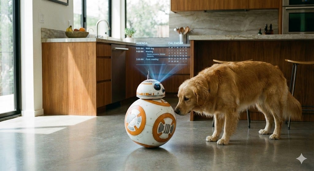 O que eles fazem? Eles podem monitorar idosos, brincar com o cachorro, projetar receitas na bancada da cozinha e até identificar se você esqueceu o fogão ligado, enviando um alerta. Dessa forma, a casa inteligente deixa de ser passiva e passa a cuidar de você ativamente.