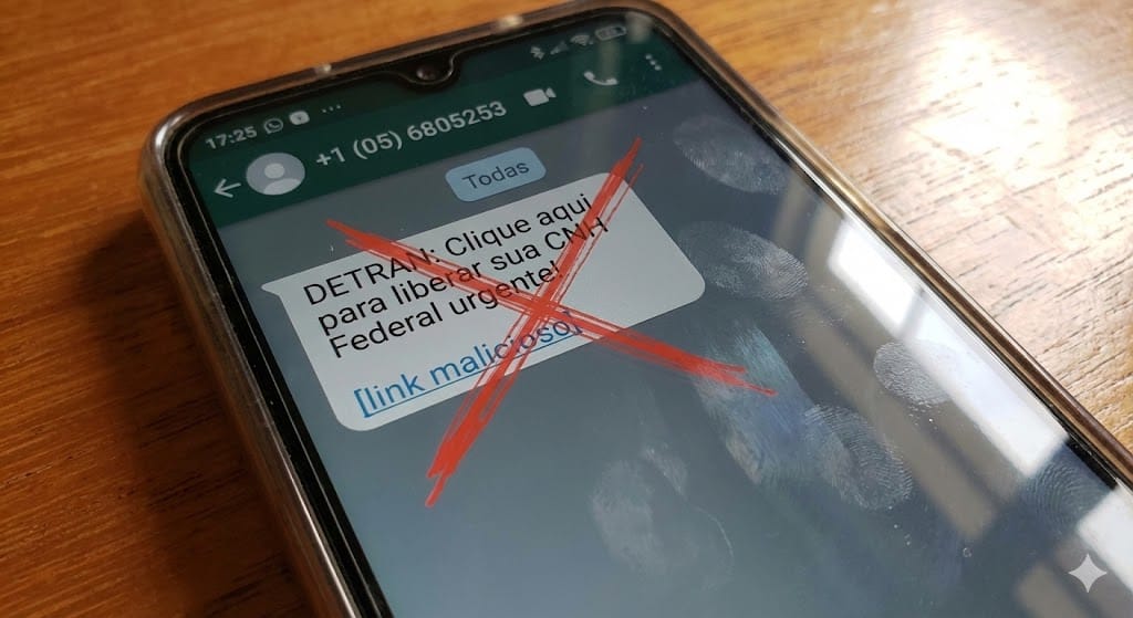 Aqui vai um alerta vital para o seu domingo. Não existe inscrição para “CNH Social Federal” no WhatsApp. Criminosos criam sites falsos prometendo habilitação grátis para todo o Brasil apenas para roubar seus dados. Memorize isso: O programa é ESTADUAL. Se o site não terminar em .gov.br e não for do Detran do seu estado, é cilada.