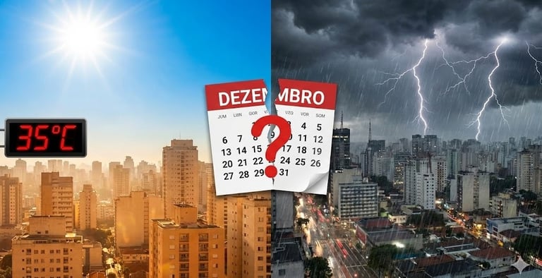 Se você saiu de casa hoje reclamando do calor e agora está ouvindo trovões, bem-vindo a dezembro de 2025. O último mês do ano começou com a instabilidade clássica que deixa todo mundo confuso: é para ligar o ar-condicionado ou fechar a janela?