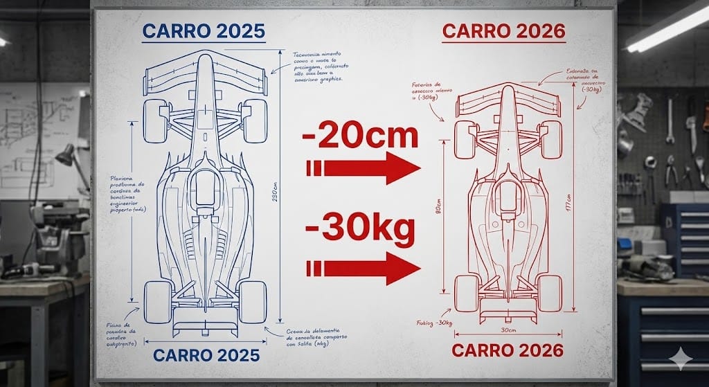 Além disso, outra reclamação antiga dos fãs foi ouvida. Os “ônibus” de 5 metros de comprimento encolheram. O regulamento de 2026 forçou as equipes a construírem carros 10cm mais estreitos e com entre-eixos reduzido. Por isso, espera-se que os carros sejam mais ágeis em curvas fechadas (como em Mônaco) e caibam melhor na pista, facilitando disputas roda a roda.