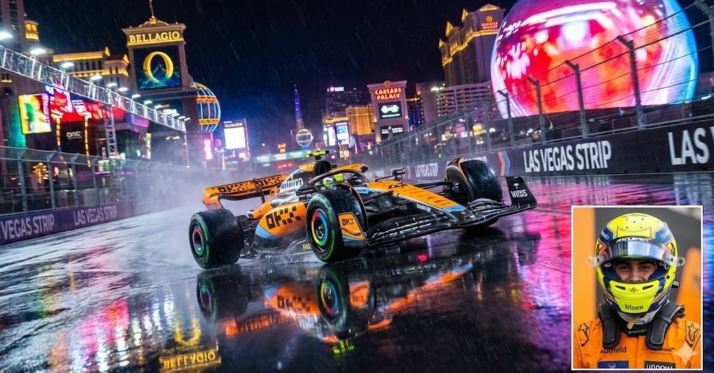 Quem diria que veríamos chuva no deserto de Nevada? A madrugada deste sábado (22) para domingo mudou o roteiro da Fórmula 1. O treino classificatório para o GP de Las Vegas 2025 foi caótico, molhado e dominado por Lando Norris.