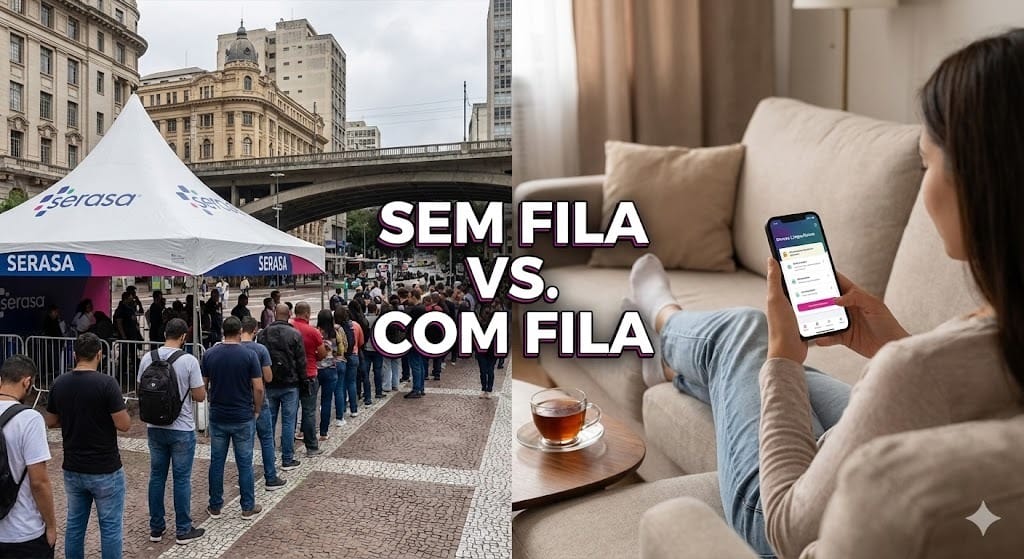 2. O Aplicativo (Até Amanhã, Domingo): É aqui que a mágica acontece sem sair do sofá. O atendimento nos canais digitais (App da Serasa e Site) vai até às 23h59 de domingo (30).