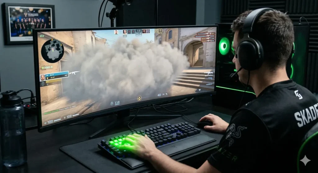 🔥 A Comunicação Furiosa: O time de KSCERATO sofre com os chamados rápidos em inglês durante o tiroteio. A sincronia tática perfeita ainda exige meses de treinamento intensivo.