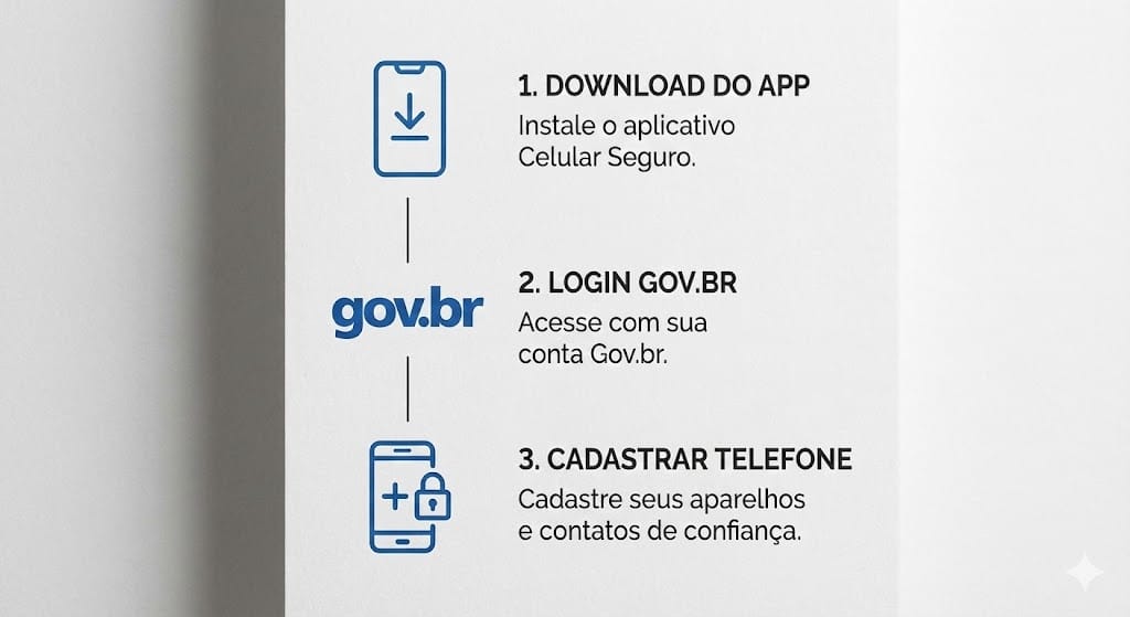 Instale o app “Celular Seguro” (disponível na Loja Oficial do Governo, Play Store ou App Store).