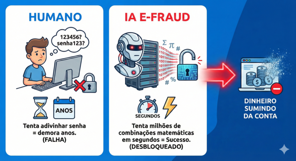 Você abre o aplicativo do banco e toma um susto: uma compra de 5 mil reais foi aprovada no seu cartão de crédito. Pois bem, o detalhe assustador é que o cartão físico nunca saiu da sua gaveta e você nunca digitou os dados dele em site nenhum. Imediatamente, o pânico toma conta. Afinal, como os bandidos conseguiram a numeração? A resposta foi revelada hoje por especialistas em segurança: hackers brasileiros desenvolveram uma Inteligência Artificial proprietária, apelidada de “E-Fraud”.
