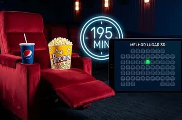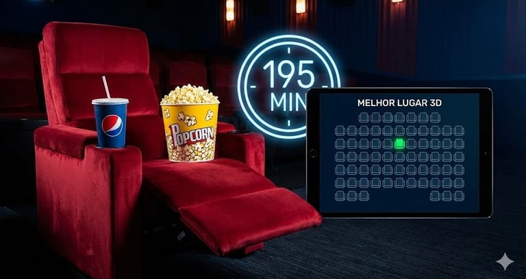 Veredito: Conforto máximo, mas tela menor. Vale a pena se você prioriza deitar na poltrona e comer bem (já que são mais de 3 horas de filme), mas você perde um pouco do impacto visual da escala gigante.
