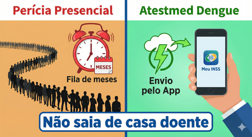 Nós sabemos que antigamente era preciso esperar meses por uma perícia presencial. Contudo, com a regra atual (vigente até abril deste ano), o governo permite que casos como a Dengue sejam aprovados apenas com a análise de documentos online. Na verdade, para uma doença que exige repouso imediato, isso significa dinheiro na conta sem sair da cama.
