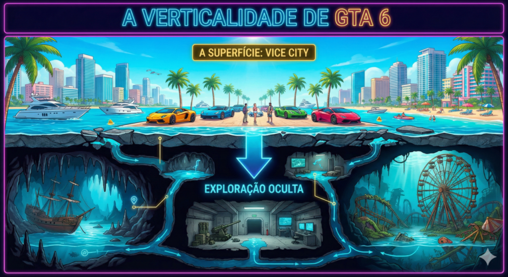 Vale a pena mergulhar no escuro em vez de curtir as praias de Vice City? A Realidade é que a Rockstar quer recompensar a curiosidade extrema com tesouros que não podem ser comprados nas lojas. Com isso, descobrir esses locais não apenas renderá itens raros e dinheiro, mas também rotas de fuga perfeitas para despistar o nível máximo de procurado. Por fim, prepare seu tanque de oxigênio e sua coragem, porque o verdadeiro crime do GTA 6 acontecerá onde o sol nunca bate.