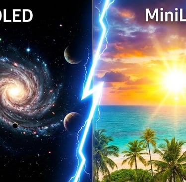 O Cenário Ideal: Se a sua sala tem janela, sol batendo ou luz acesa, o MiniLED vence. A OLED sofre com reflexos e "morre" na claridade; a MiniLED brilha tanto que vence o sol.