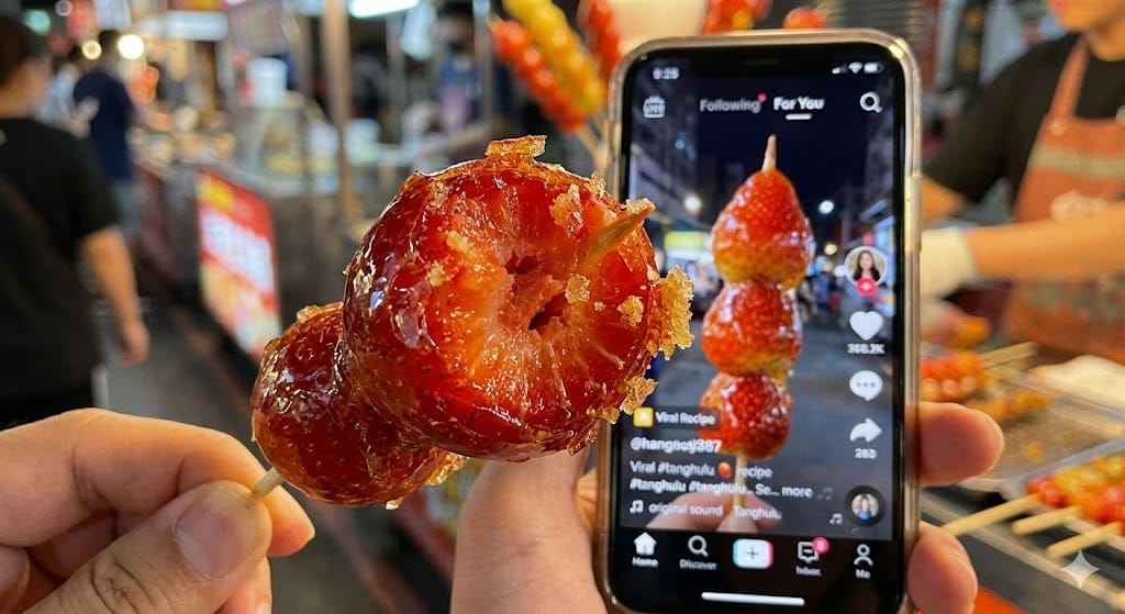 Morango do Amor (Tanghulu): A busca por “como fazer morango caramelizado” explodiu. A trend asiática invadiu as cozinhas brasileiras, causou algumas queimaduras com caramelo quente, mas foi o doce oficial de 2025.