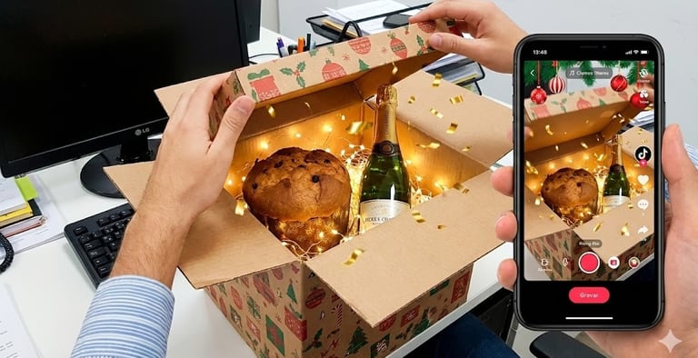 Se a sua empresa for "moderninha", você pode ter uma surpresa este ano. Para fugir das críticas, muitos RHs apostaram na gourmetização. O item mais cobiçado nos unboxings de hoje não é mais o vinho, é o Panetone de Pistache ou itens "premium" de marcas famosas de chocolate.
