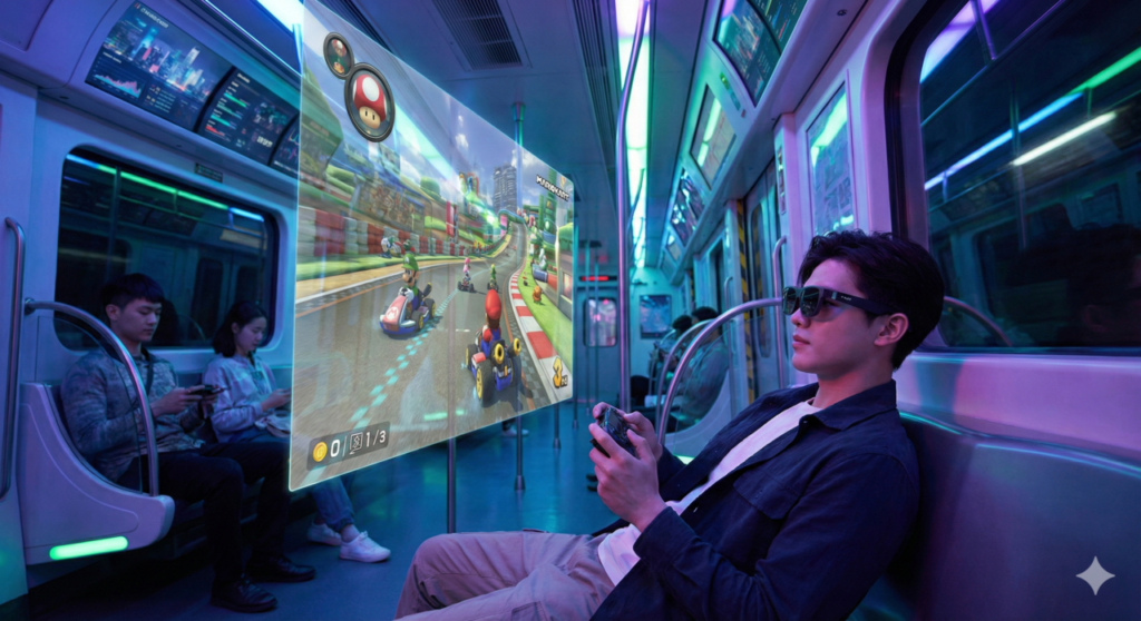 Isso significa, na prática, que o conceito de “console híbrido” atingiu seu ápice. O jogador não precisa mais escolher entre a tela pequena do modo portátil ou a TV de casa. Com os óculos, o console roda em potência máxima (modo dock), mas a tela gigante viaja com você.