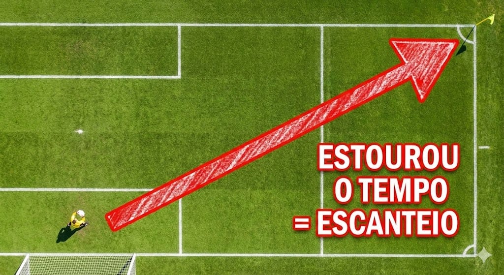 Por isso, a IFAB testou e aprovou a mudança radical: Se o goleiro estourar os 8 segundos, o juiz apita e marca Escanteio (Tiro de Canto) para o time adversário. Consequentemente, o jogo flui rápido. O goleiro errou? O outro time corre para a bandeirinha e cruza na área. É uma chance clara de gol criada pela lerdeza do arqueiro.