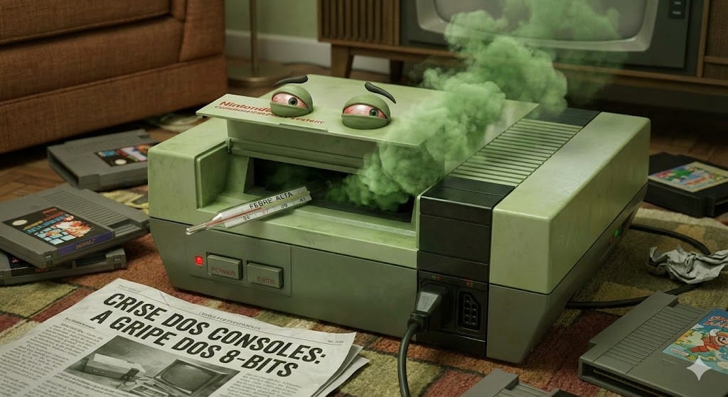 Quem nunca passou por isso? Você colocava o cartucho do Super Mario ou do Sonic, ligava a TV e… tela preta. O instinto era imediato: tirar a fita, dar aquele sopro forte (quase cuspindo) e colocar de volta. Mágica! O jogo funcionava.