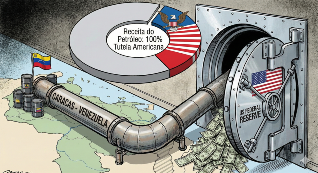 Nós sabemos que a promessa era de “libertação”. Contudo, a fala de Trump revelou que a relação atual vai muito além da diplomacia. Na verdade, ao afirmar que “nunca viu uma cooperação tão boa” e que “eles nos aceitaram de braços abertos”, o presidente americano sinalizou que a soberania econômica de Caracas foi transferida, na prática, para o Departamento do Tesouro dos EUA.