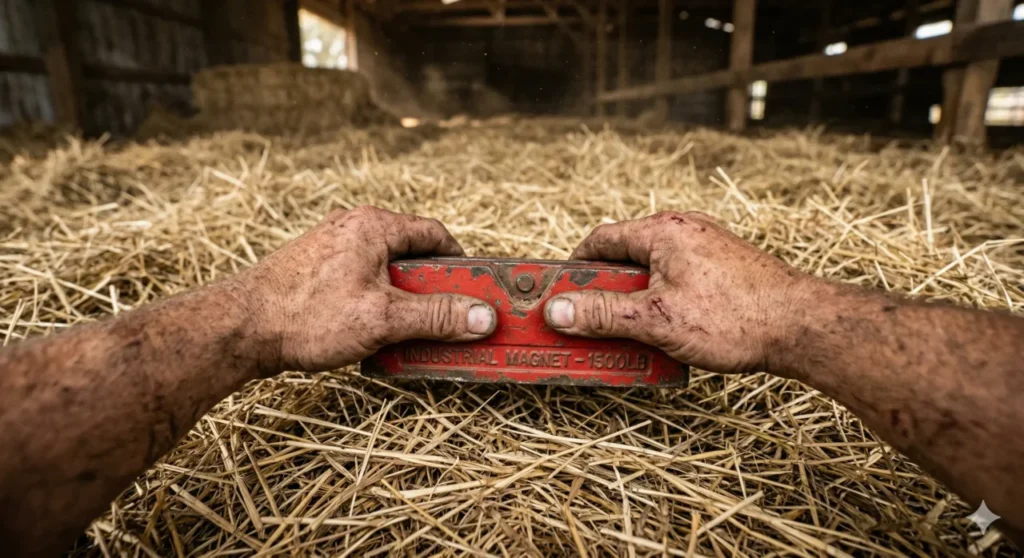 A busca implacável consumiu mais de oito horas ininterruptas de esforço físico. Os participantes usaram ímãs gigantes e óculos de proteção para evitar acidentes graves no celeiro.