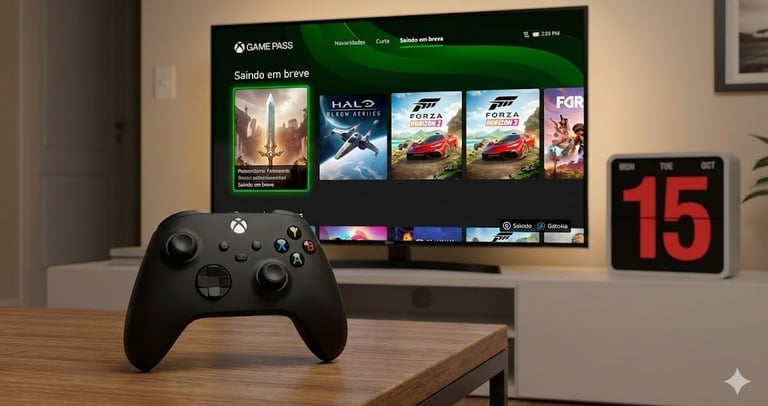 Como conferir agora: Abra seu app do Xbox (no celular ou PC) ou vá na aba "Game Pass" do console e desça até encontrar a linha "Saindo em breve".