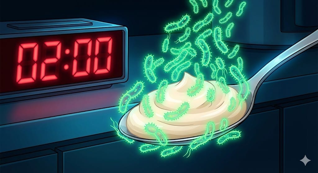 - A Regra de Ouro: Nutricionistas e a ANVISA são taxativos: Pratos com maionese, ovos ou laticínios não podem ficar mais de 2 HORAS fora de refrigeração. Se o dia estiver muito quente (acima de 30°C), esse tempo cai para 1 hora.
