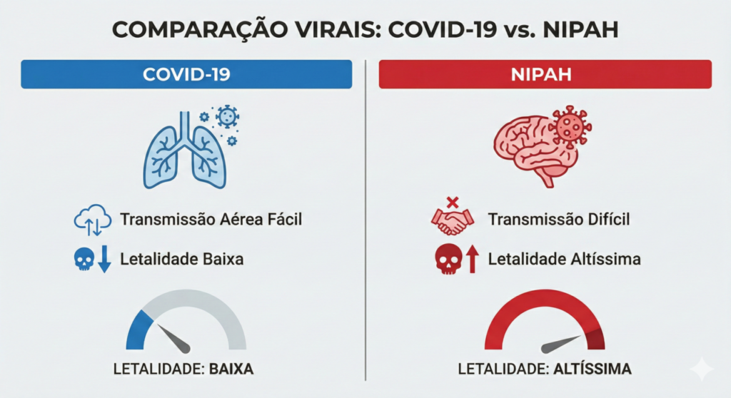 Aqui entra a dose de realidade necessária. Embora surtos aconteçam periodicamente na Índia e em Bangladesh, a chance de uma pandemia global explosiva (como a da Covid) é menor. Isso ocorre porque o Nipah não se espalha tão facilmente pelo ar entre pessoas assintomáticas.