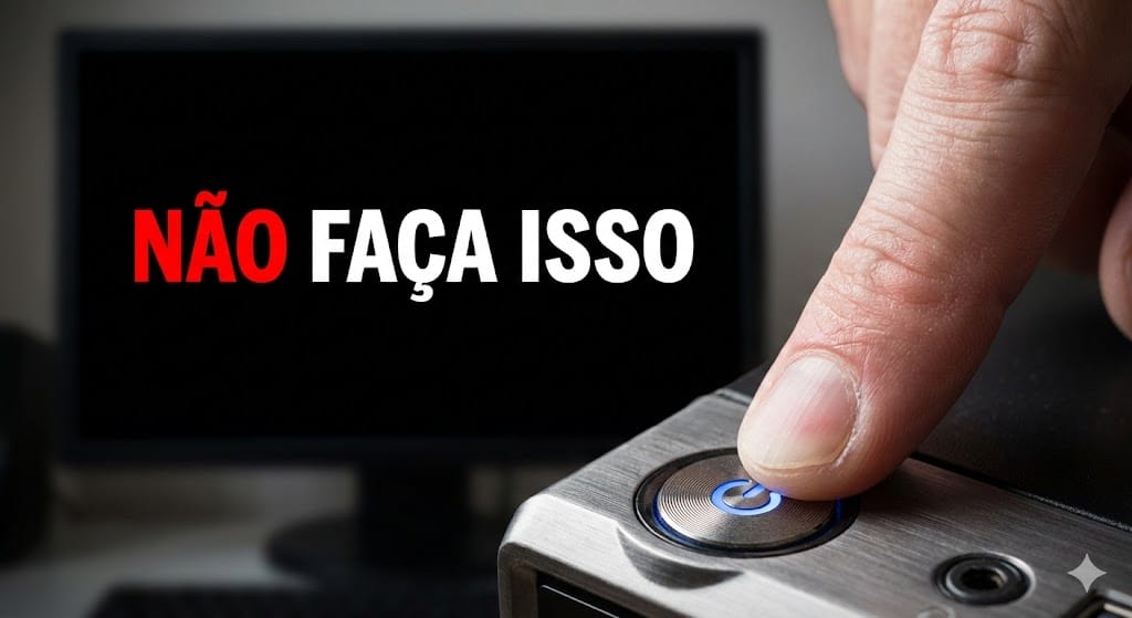 Muitos usuários, desesperados com a máquina travada, estão tomando a pior decisão possível. Primeiramente, eles seguram o botão físico de Power até o PC morrer.
