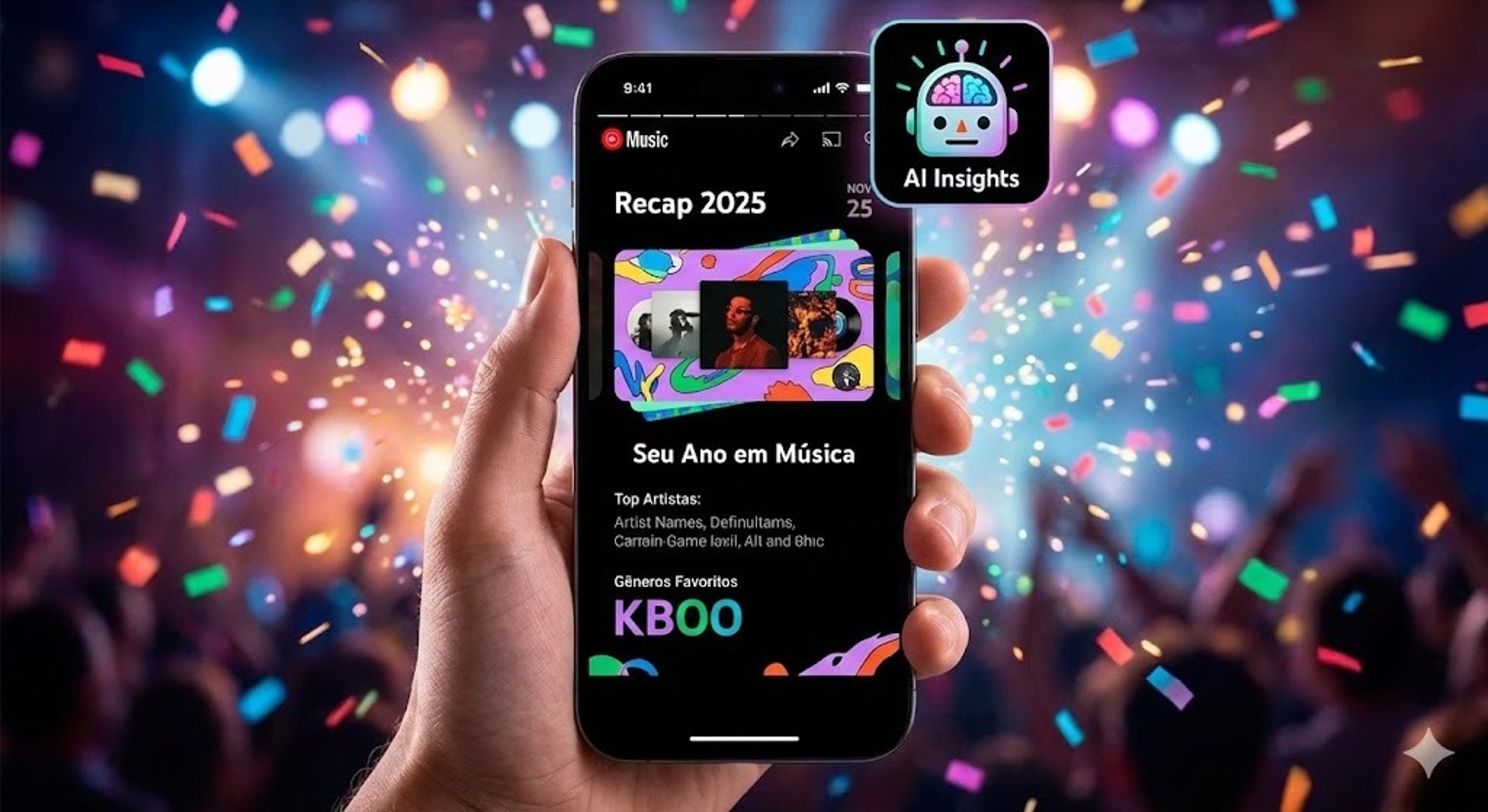 A temporada abriu! O YouTube Music Recap 2025 foi liberado hoje (25/11). Veja como acessar sua retrospectiva, usar o novo chat de IA e descobrir seu "Passaporte Musical".