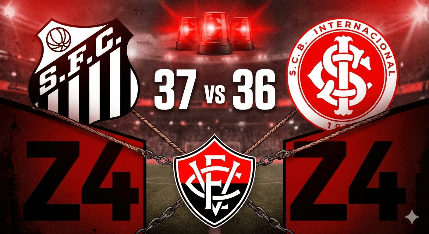 A tabela atualizada do Brasileirão 2025 mostra um cenário aterrorizante para duas das maiores torcidas do país. Santos e Internacional chegaram à 34ª rodada empatados com 37 pontos, ocupando a 16ª e 15ª posições, respectivamente.
